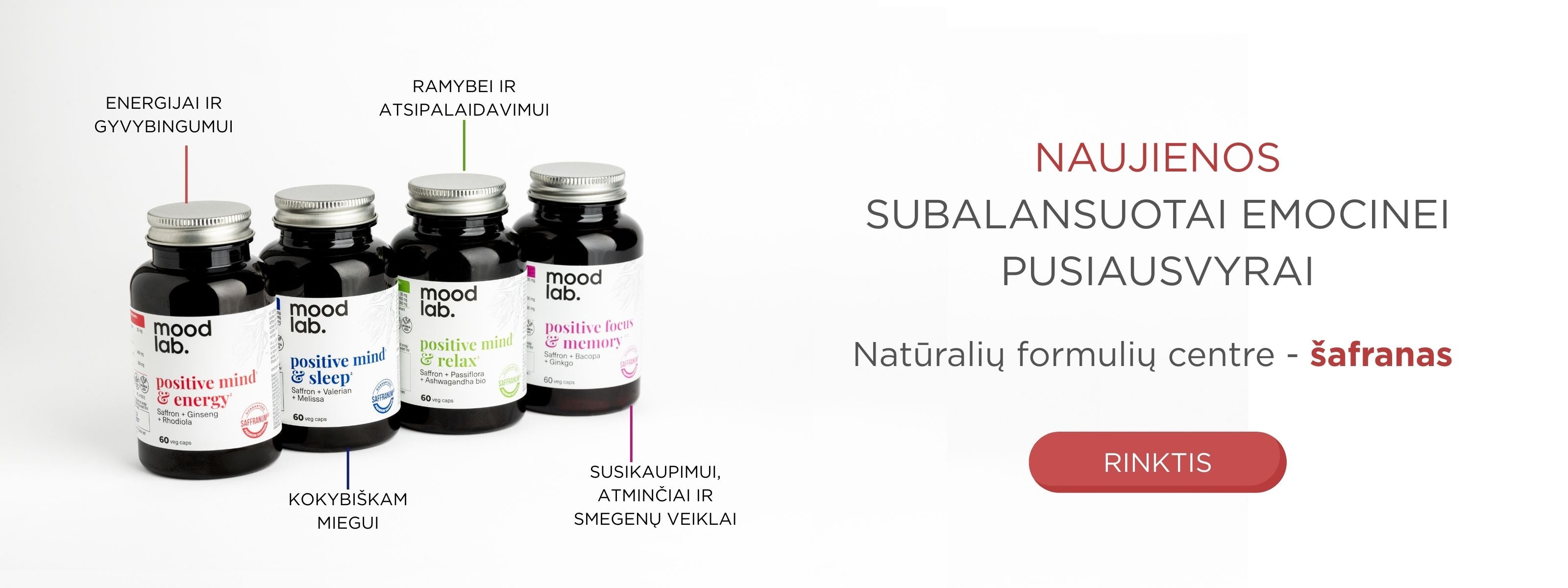 Belgijos gamintojo unikalios maisto papildų formulės sukurtos iš kruopščiai atrinktų, moksliškai pagrįstų ingredientų, tarp kurių ypatingą vietą užima aukščiausios kokybėsSaffranum®. Tikėjimas, kad rūpinimasis savimi turi būti paprastas ir malonus, įkvėpė kurti veiksmingus bei patikimus sprendimus kasdienai. Moodlab bendradarbiauja su psichologais, farmacininkais ir kitais ekspertais, kad jų produktai atitiktų aukščiausius kokybės standartus. Moodlab tikslas – padėti kiekvienam atrasti vidinę pusiausvyrą ir išlaikyti sveiką protą sveikame kūne.