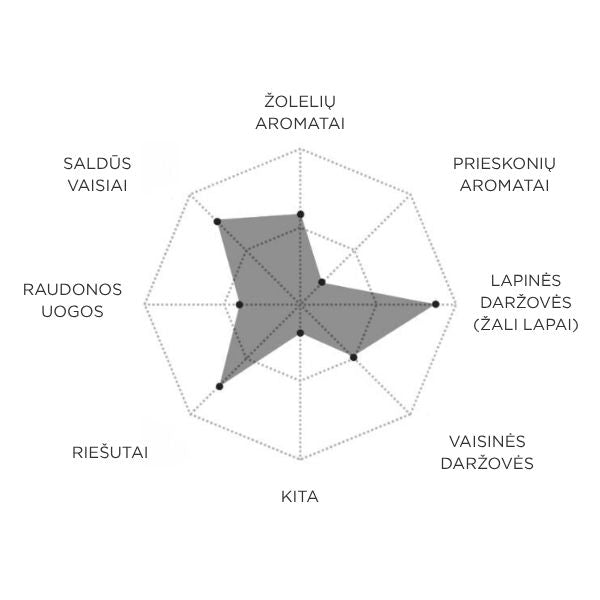 - Aliejus išsiskiria žaliu, vaisišku aromatu su subtiliomis pomidoro šakelės ir saldžių vaisių natomis.
