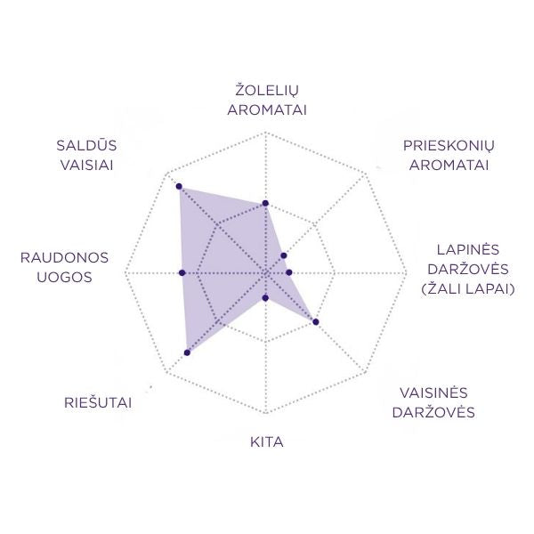 - Saldus, vaisiškas aromatas primena persikus ir braškes, o subtilos džiovintų vaisių užuominos praturtina aliejaus skonį. Švelniai saldus poskonis ir puikiai subalansuotas kartumas - puikus pasirinkimas ne tik salotoms, bet ir desertams ar vaisių patiekalams gardinti.